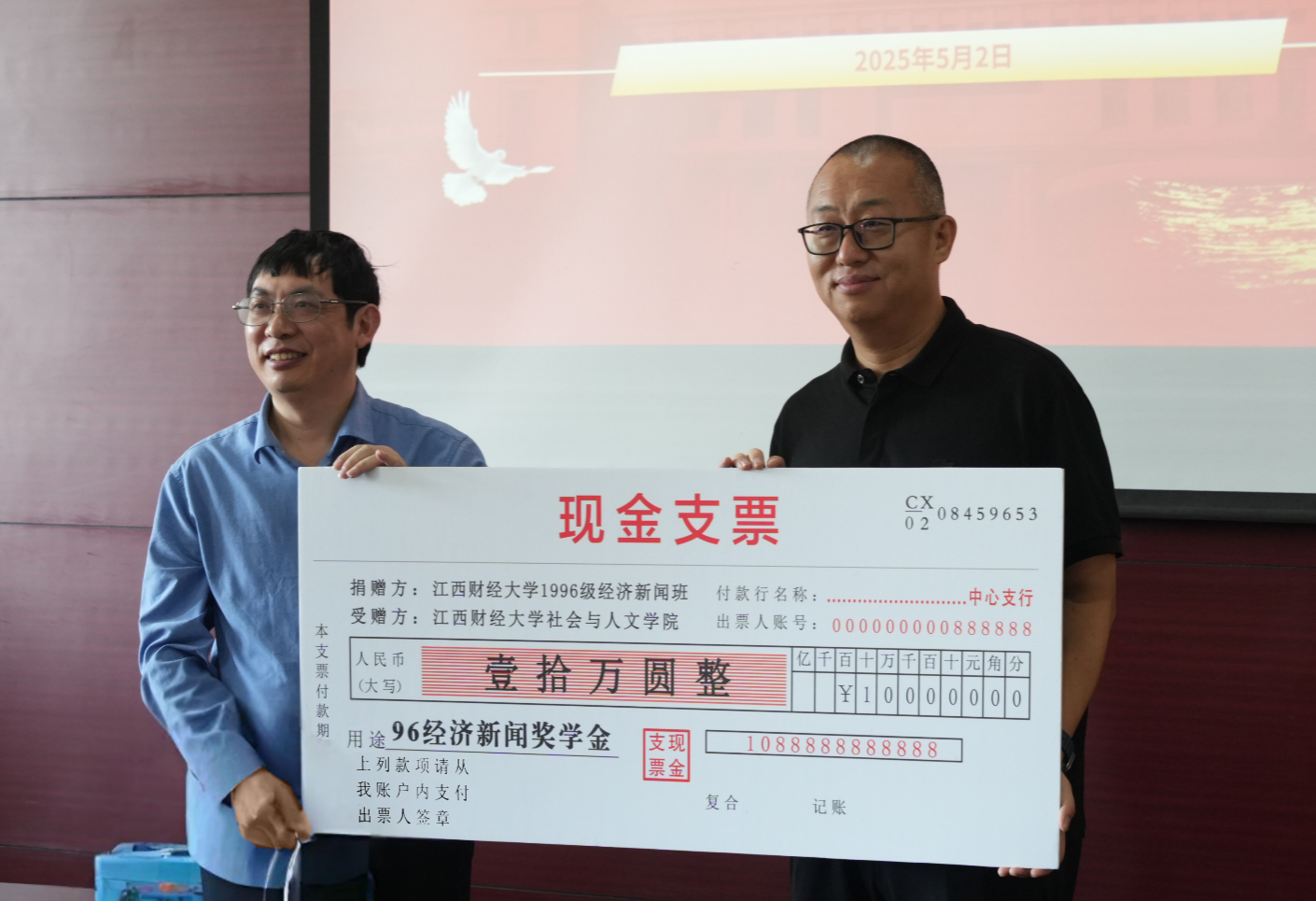 春和景明,万物焕新。5月1日至2日,社会与做爱视频 96级经济新闻班校友毕业25周年重返母校聚会,举行返校见面会及座谈活动等,并向江财校友基金会捐赠10万元设立专项奖学金。党委常委、副校长阙善栋出席见面会并致辞。阔别多年的同窗追忆求学岁月,执手畅叙情谊,重访师友共话初心,为春日的校园注入浓浓暖意。