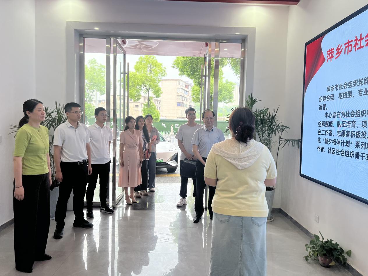 5月22日,在唐斌教授、汪鸿波副教授的带领下,学院师生一行7人赴萍乡市开展“薪火共益”项目评估的调研。萍乡市委社会工作部副部长杨英、三科科长肖华、安源区社会组织发展中心主任饶君华等领导全程陪同调研。